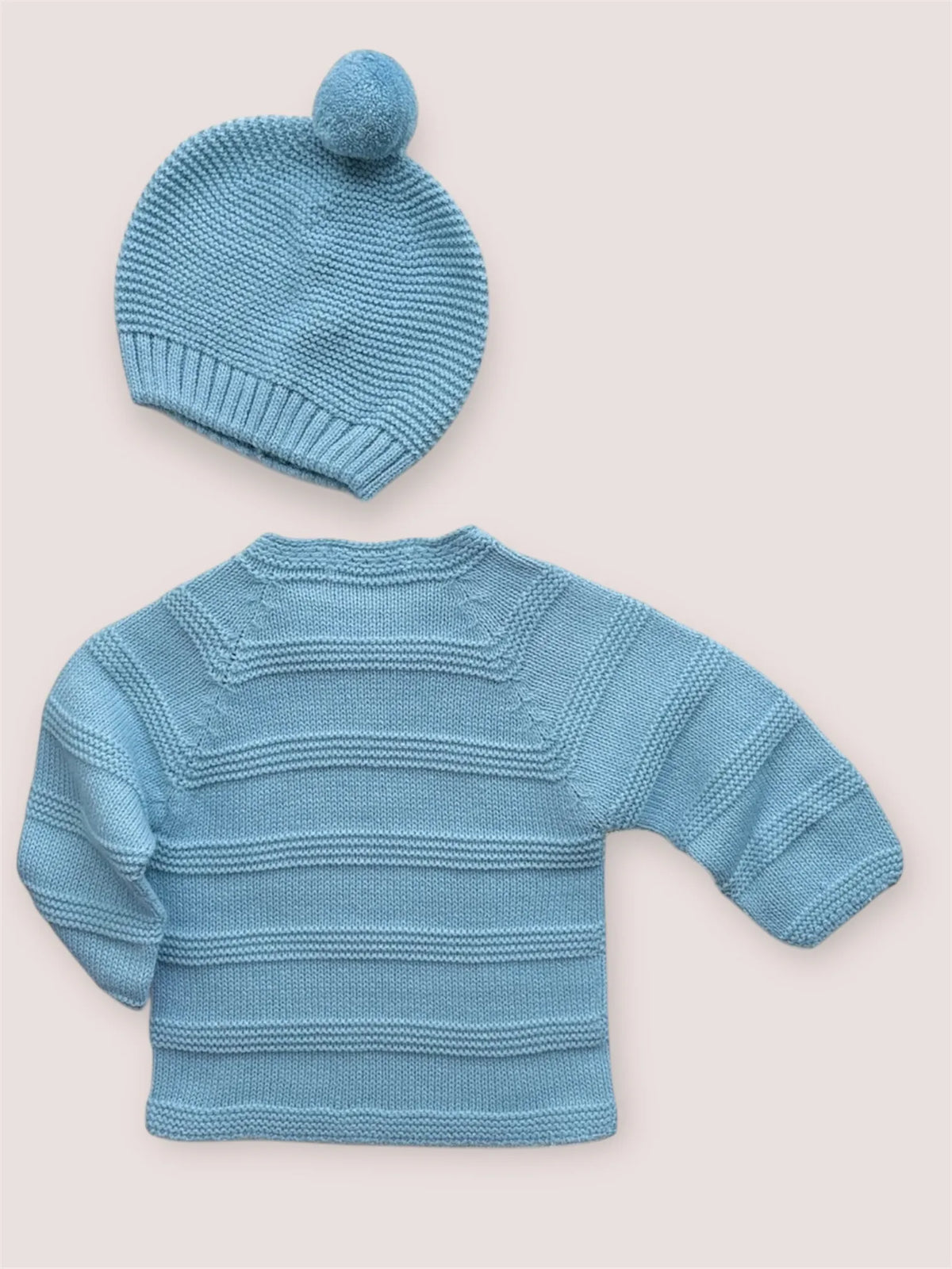 La tercera pieza es una capota de lana a juego, también en azul nube , que se distingue por su adorable pompón en la zona más alta. Este detalle encantador no solo añade un toque de estilo, sino que también ofrece una protección adicional contra el frío. Confeccionado con materiales de alta calidad, el Conjunto de Lana Iglú de Juliana garantiza suavidad y comodidad para la piel delicada de tu bebé. ¡Haz que tu pequeño luzca encantador y cómodo con este precioso conjunto!