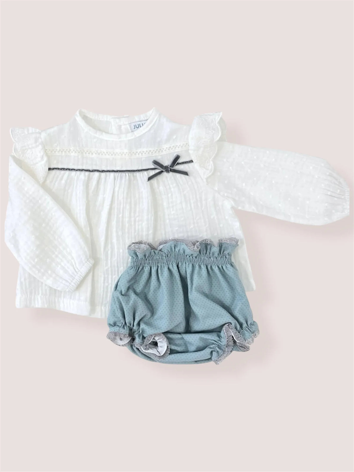 Precio unitario porEl conjunto Destello de Juliana es la prenda perfecta para vestir a tu bebé con un toque de dulzura y elegancia. Este encantador conjunto está compuesto por una blusita de plumeti en un delicado color blanco roto , que destaca por su suavidad y ligereza. El detalle de una línea en color antracita y un lazo en el mismo tono , situado en la parte superior izquierda, añade un toque sofisticado y moderno al diseño, haciendo de este jesusito una opción única y encantadora.