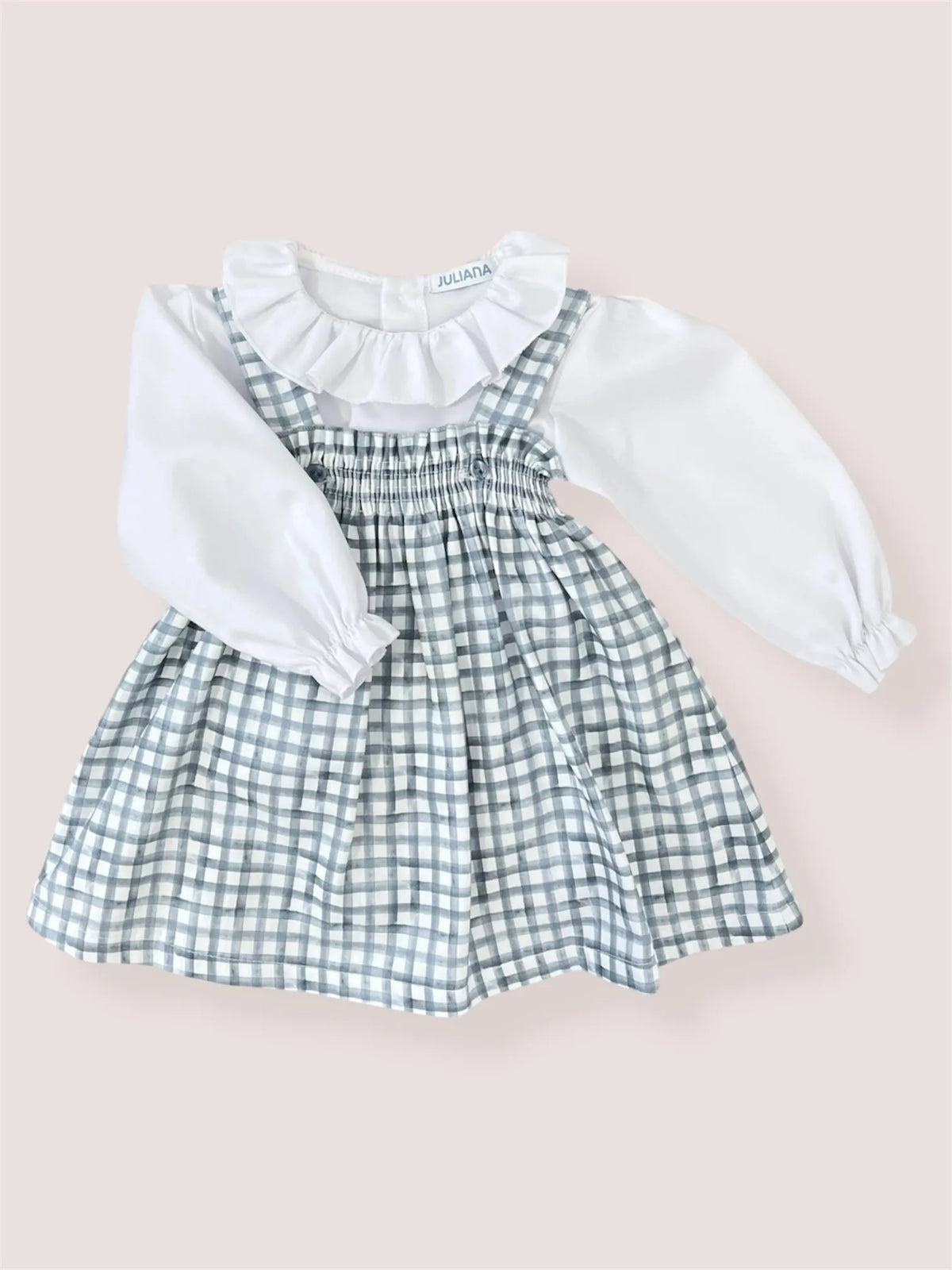 Precio unitario por¡Haz que tu pequeño luzca encantador con el Vestido Duende para bebés de Juliana ! Este adorable conjunto está diseñado para ofrecer el equilibrio perfecto entre estilo y comodidad. El vestido de cuadros blanco y azul es una opción clásica y elegante que hará que tu bebé destaque en cualquier ocasión. Su diseño sencillo, sin volantes ni ribetes, realza la sofisticación natural del conjunto, mientras que los colores frescos y vibrantes aseguran que tu pequeño siempre esté a la moda.