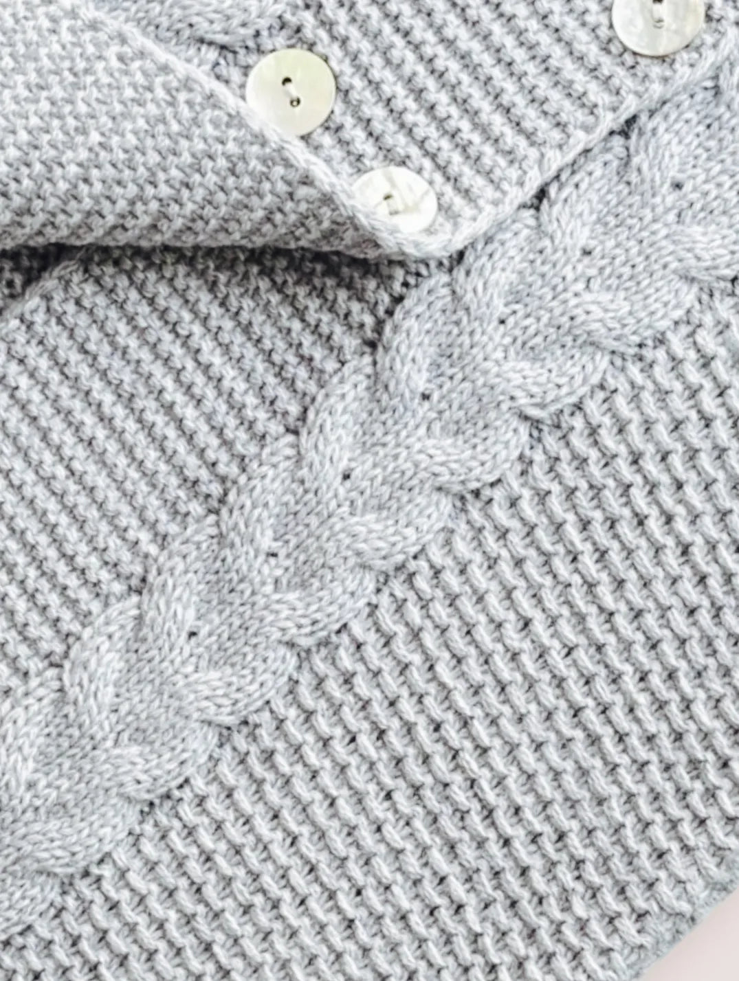Ideal para bautizos, eventos familiares o como regalo especial, el Abrigo Trenzas Piano Gris combina elegancia, calidez y artesanía. Con Juliana, viste a tu bebé con prendas que transmiten amor, historia y máxima dedicación.