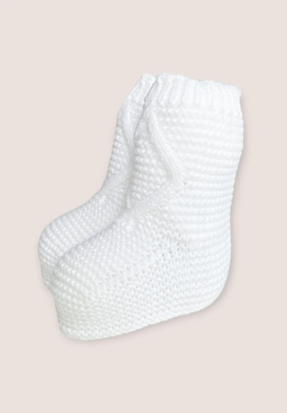 Los Patucos Nieve de Punto Solita son la elección perfecta para mantener los pies de tu bebé abrigados con estilo. Confeccionados en lana de alta calidad en color blanco , estos patucos ofrecen una suavidad y calidez excepcionales. El diseño se destaca por un bordado de rombos que recorre toda la prenda , añadiendo un toque elegante y distintivo.