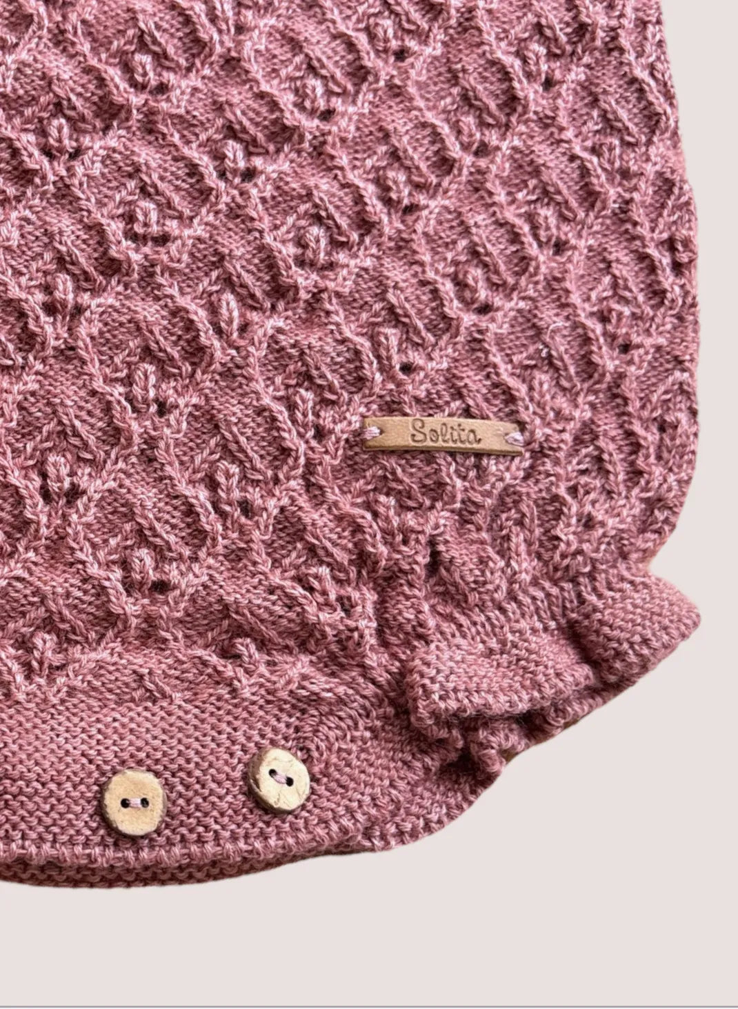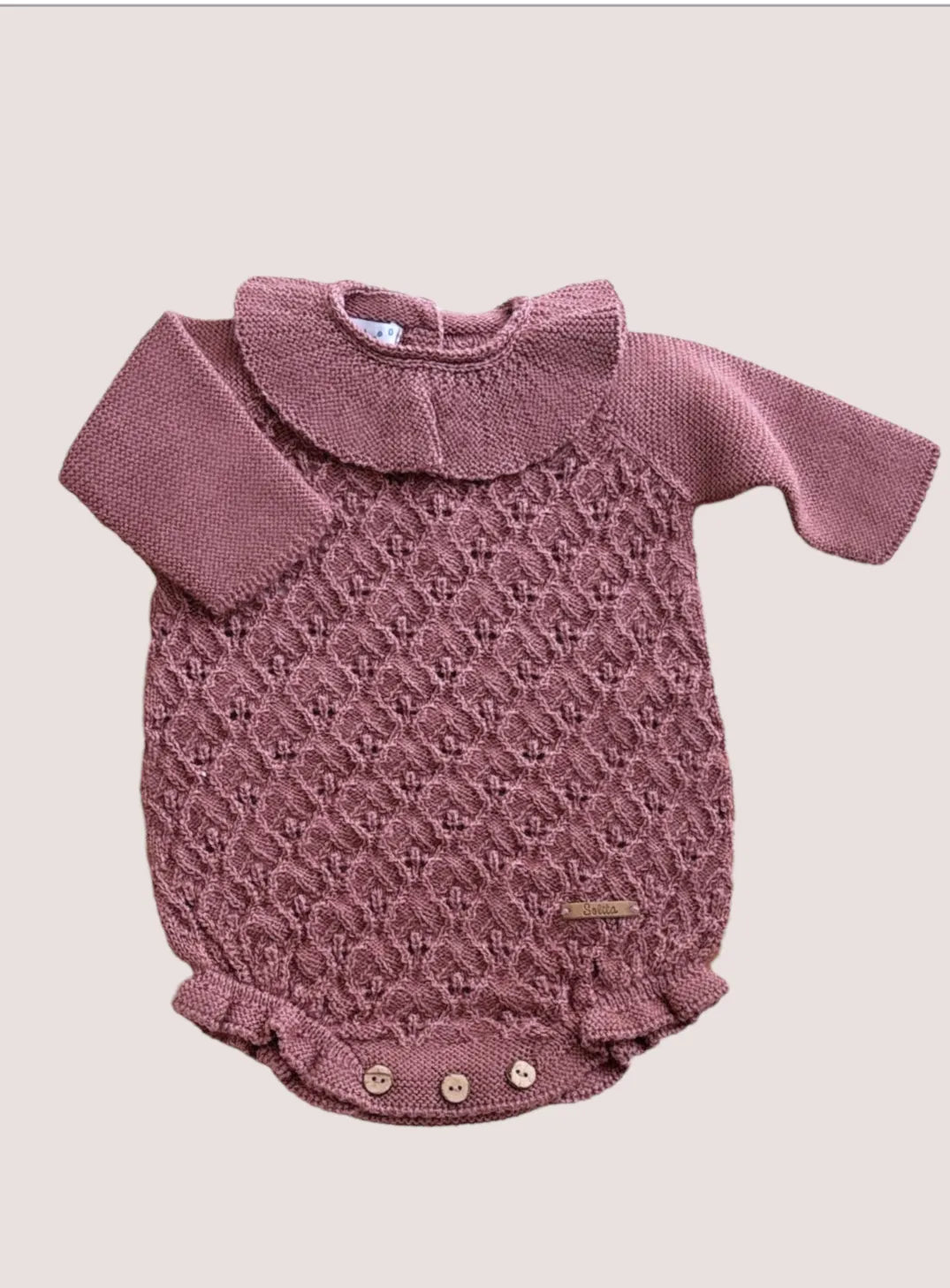 Precio unitario porEl pelele Lunisea de punto Solita es una prenda exclusiva diseñada para envolver a tu bebé en suavidad, estilo y confort. Confeccionado en lana merino de alta calidad, este pelele ofrece una textura delicada y cálida, perfecta para cuidar la piel sensible de los más pequeños. Su tono berenjena profundo aporta elegancia y originalidad, convirtiéndolo en una opción ideal tanto para el día a día como para ocasiones especiales. El cuello con volante tejido añade un toque romántico y artesanal que realza el diseño clásico con un aire contemporáneo.