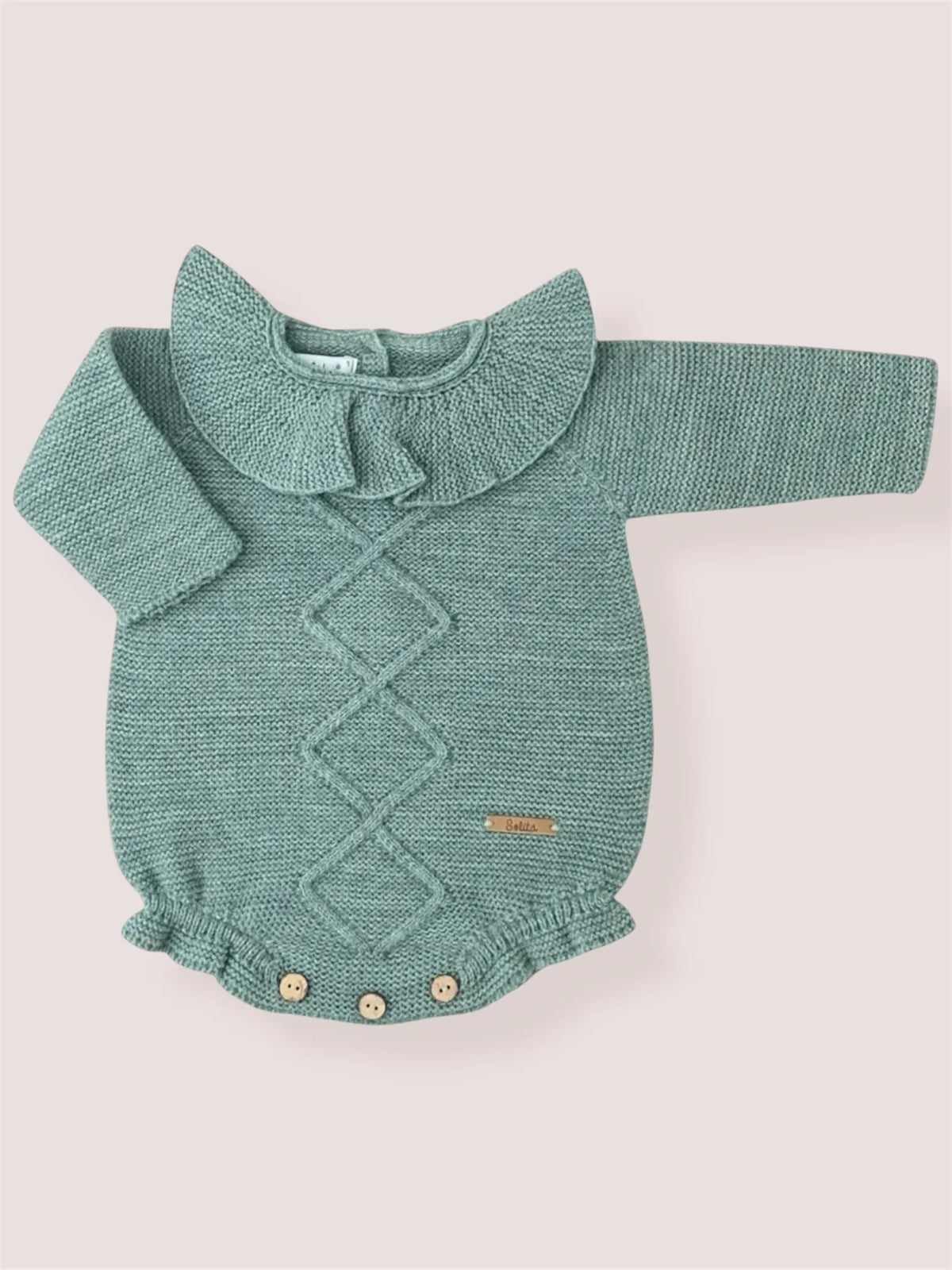 Precio unitario porEl Pelele Bosque de Punto Solita es una prenda exclusiva y elegante, diseñada para proporcionar el máximo confort a tu bebé. Fabricado en lana verde botella de alta calidad, este pelele ofrece una suavidad inigualable, ideal para mantener a tu pequeño abrigado en los días más fríos. Su diseño se realza con un delicado cuello de volante y una línea central con rombos bordados, que le otorgan un toque sofisticado y único.