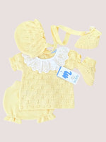 ¡Descubre la dulzura y comodidad del conjunto de cuatro piezas Margarita en color Amarillo pastel de hilo para recién nacidos! 🌸 Este encantador conjunto está diseñado pensando en el bienestar de tu pequeño, ofreciendo una combinación perfecta de estilo y funcionalidad.